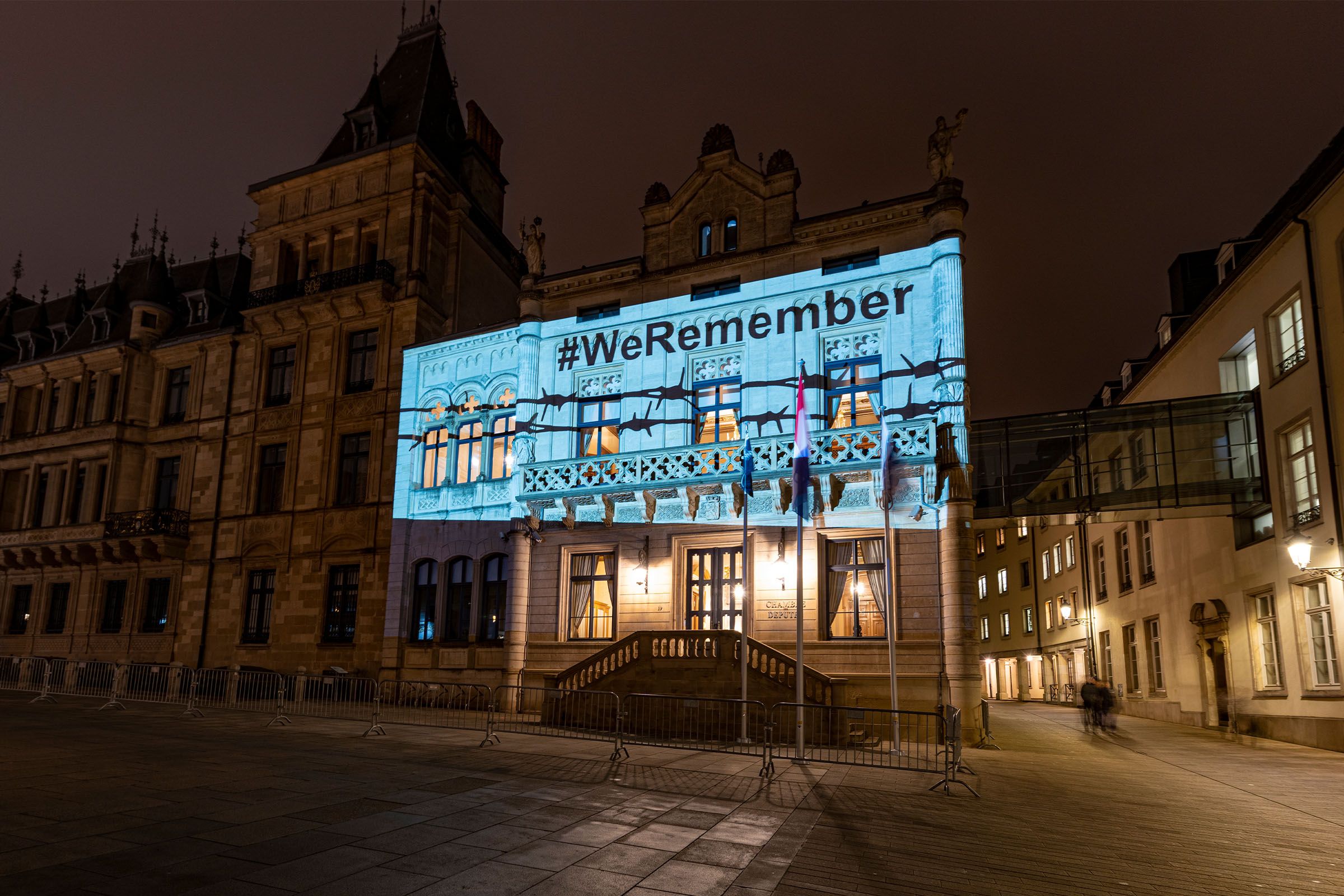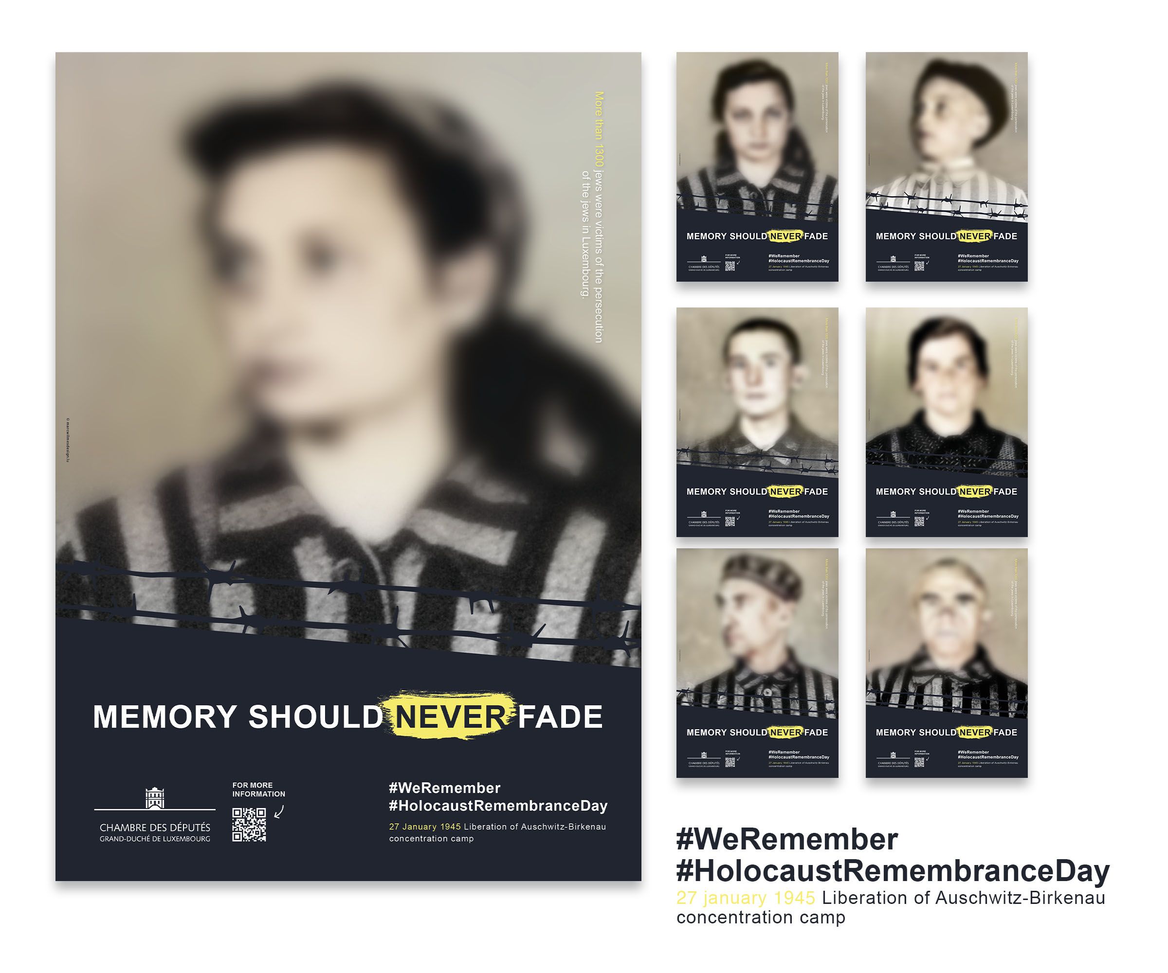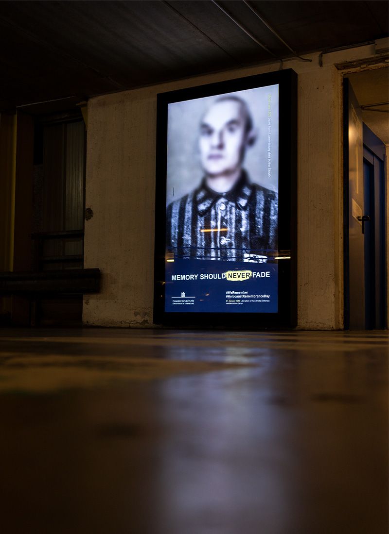 During the Covid-19 pandemic, the Chamber of Deputies felt it was particularly important to participate in the #WeRemember campaign in order to communicate a clear message to the public through a broad-based awareness campaign. Under the slogan ‘Memory should never fade’, posters and floor stickers were placed in Luxembourg railway stations to confront the population with the issue in the very places from which Jews were transported to concentration camps at the time.