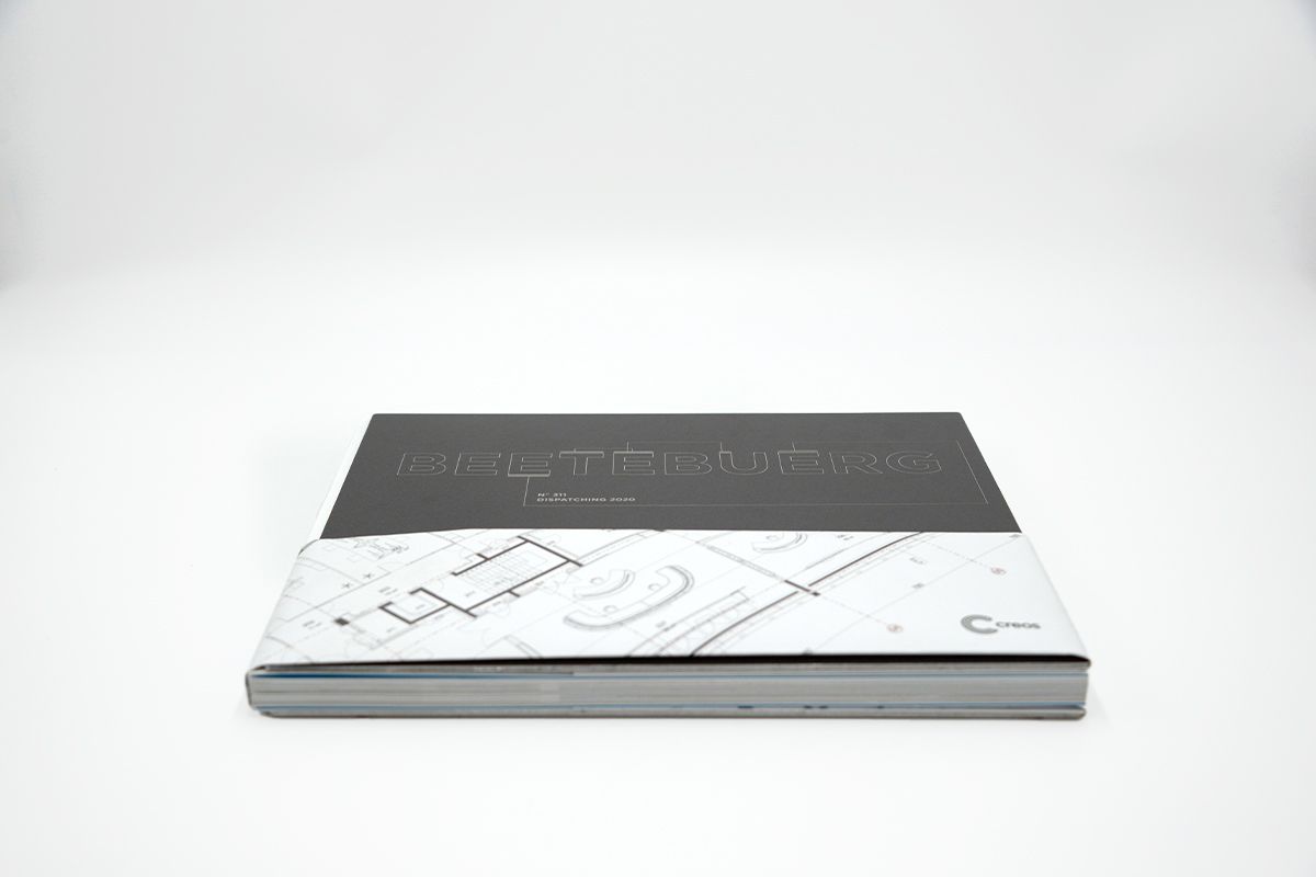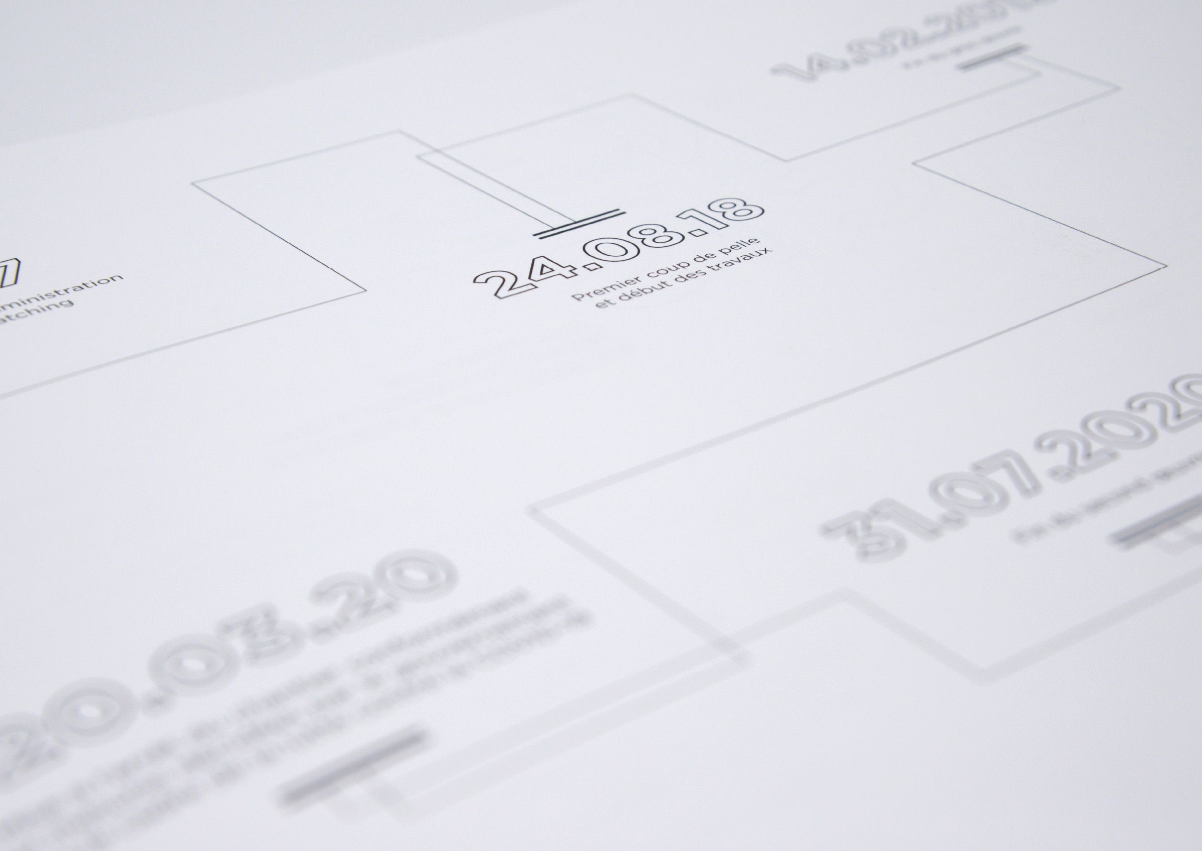 Compose a limited edition photo book (300 copies) documenting the construction of the new dispatching building in Bettembourg. The hardcover book contains various interviews, plans and explanations of the construction project, and the imagery used in dispatching is graphically processed to illustrate the information clearly and in a modern way.