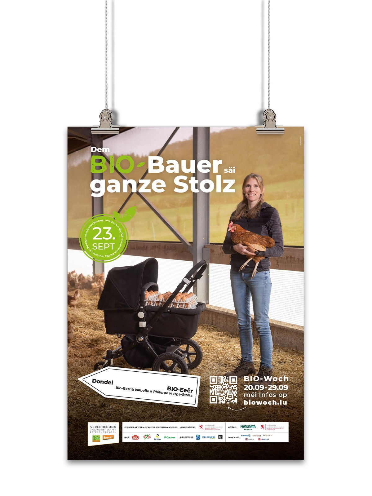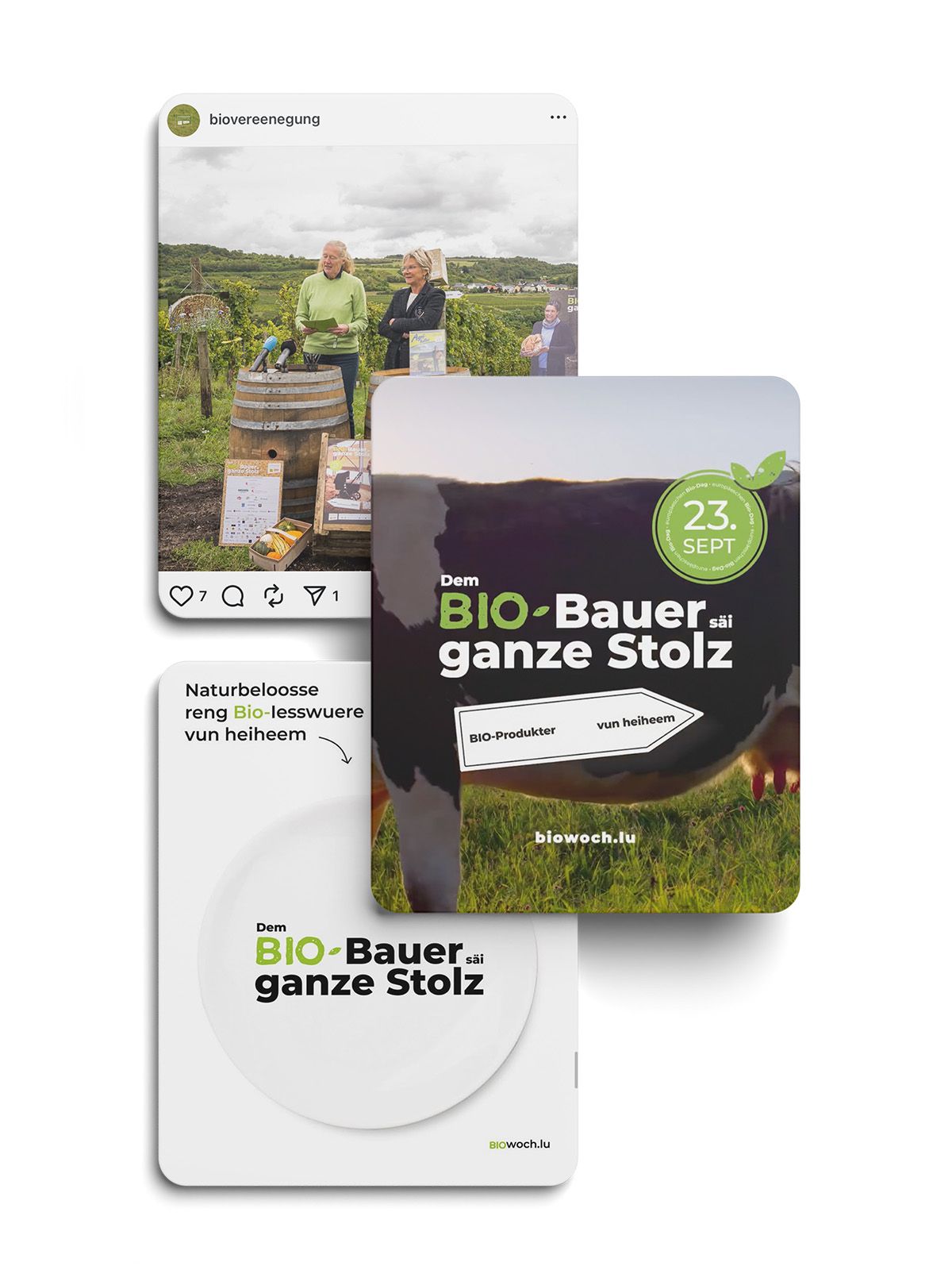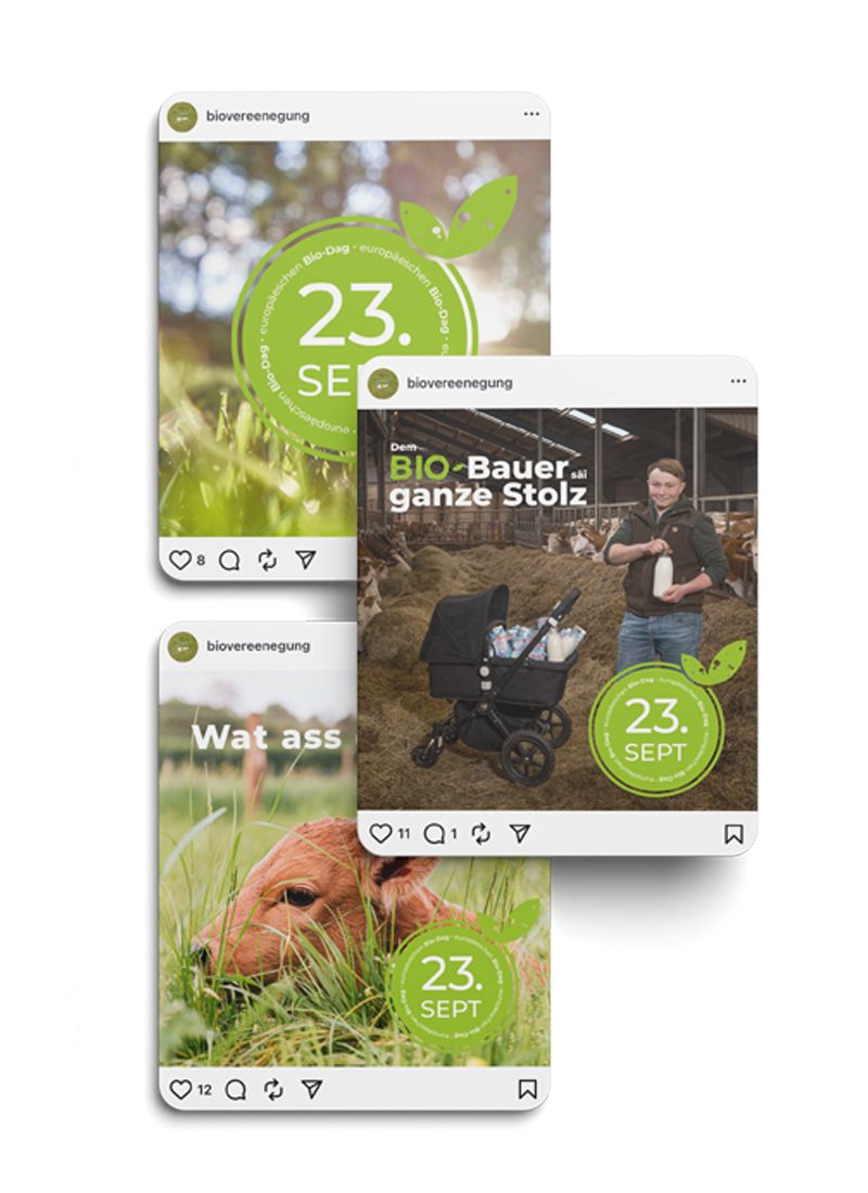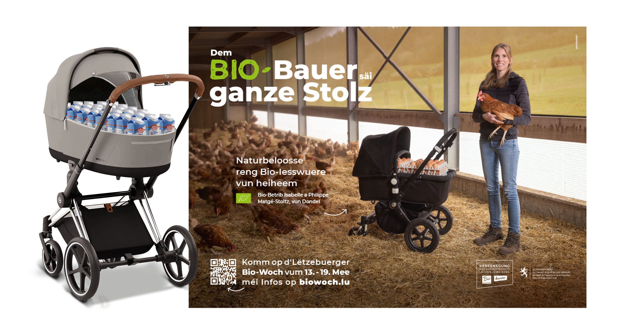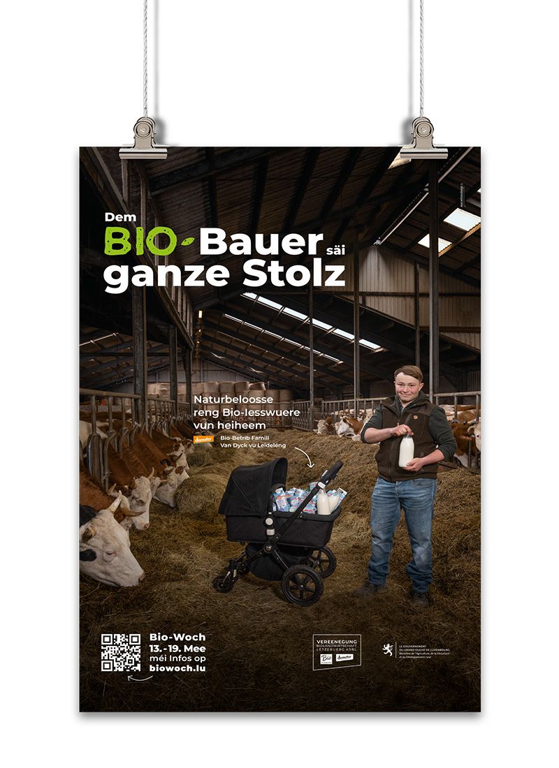 The Vereenegung fir Biolandwirtschaft Lëtzebuerg organises, with the support of the Ministère de l’Agriculture, de l‘Alimentation et de la Viticulture, a large-scale awareness campaign in the form of an organic week entitled ‘Dem Bio-Bauer säi ganze Stolz’ to promote organic farming and its products.