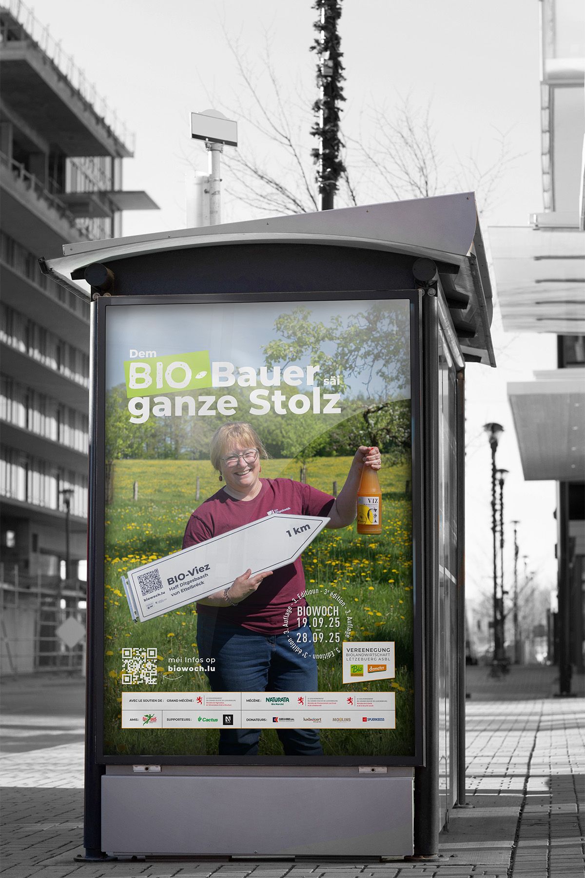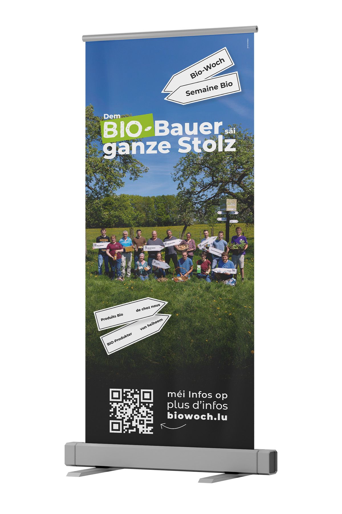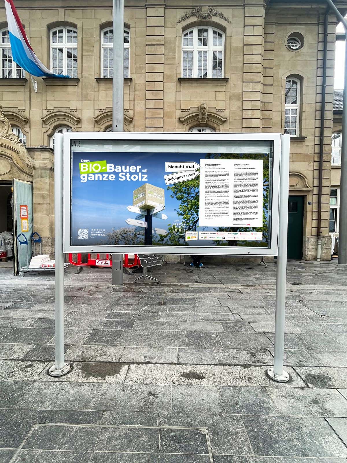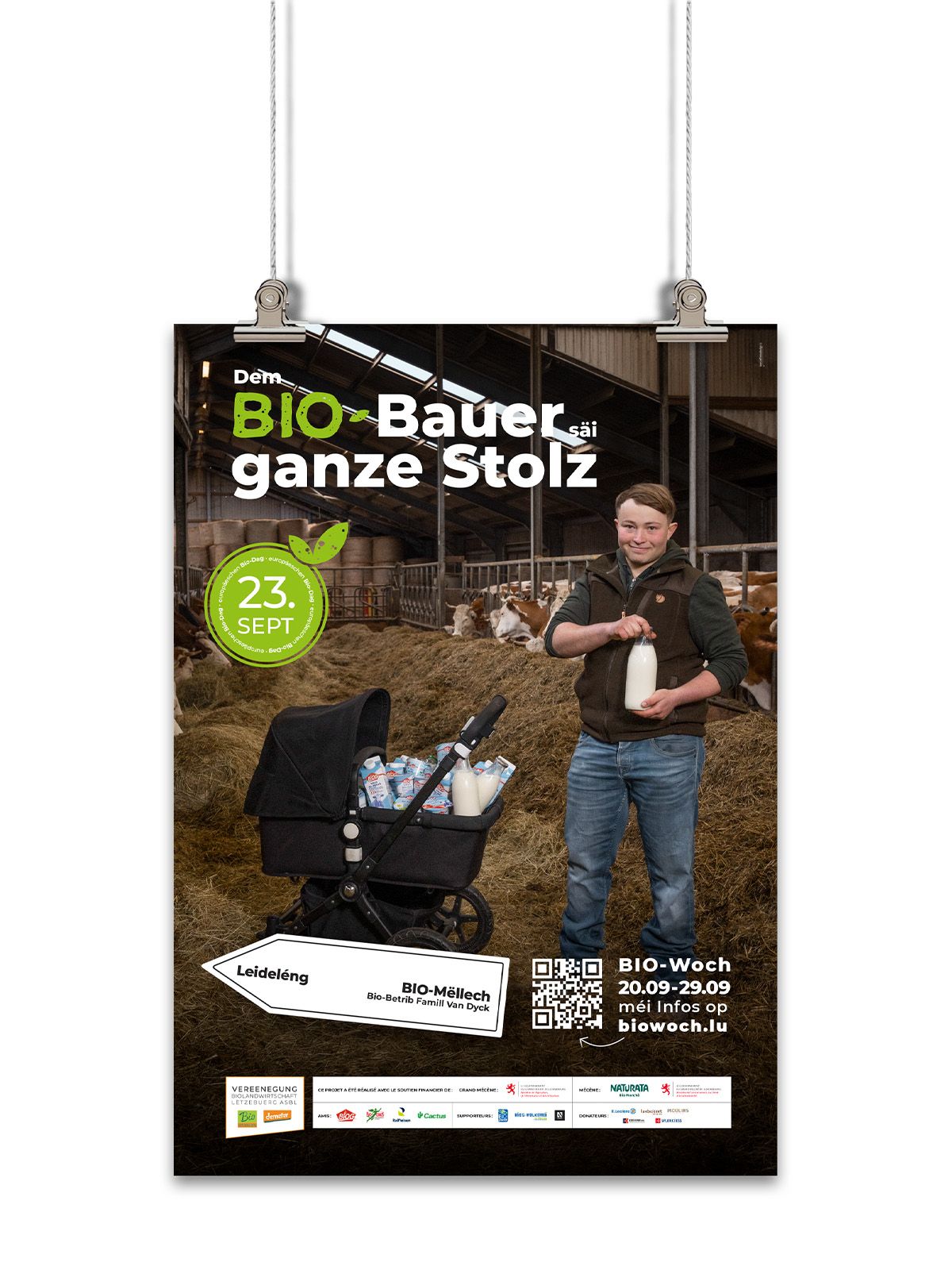 The Vereenegung fir Biolandwirtschaft Lëtzebuerg organises, with the support of the Ministère de l’Agriculture, de l‘Alimentation et de la Viticulture, a large-scale awareness campaign in the form of an organic week entitled ‘Dem Bio-Bauer säi ganze Stolz’ to promote organic farming and its products.