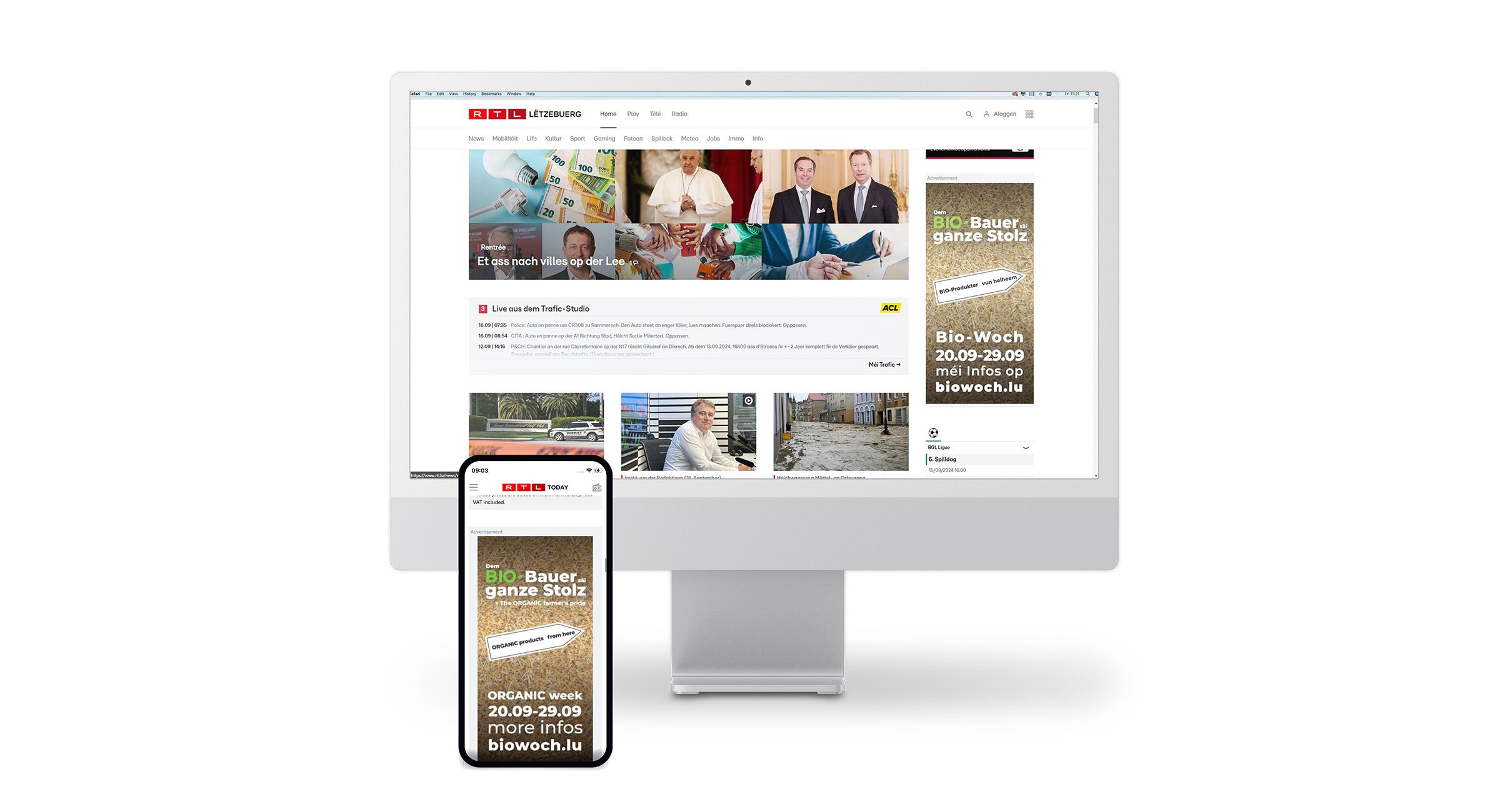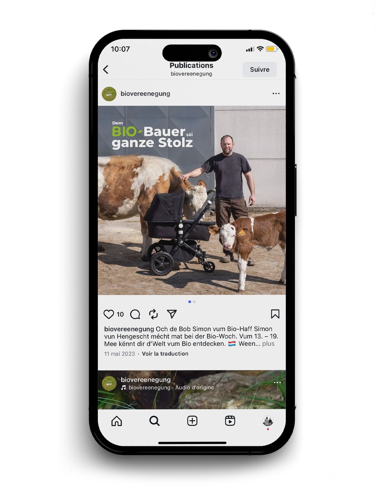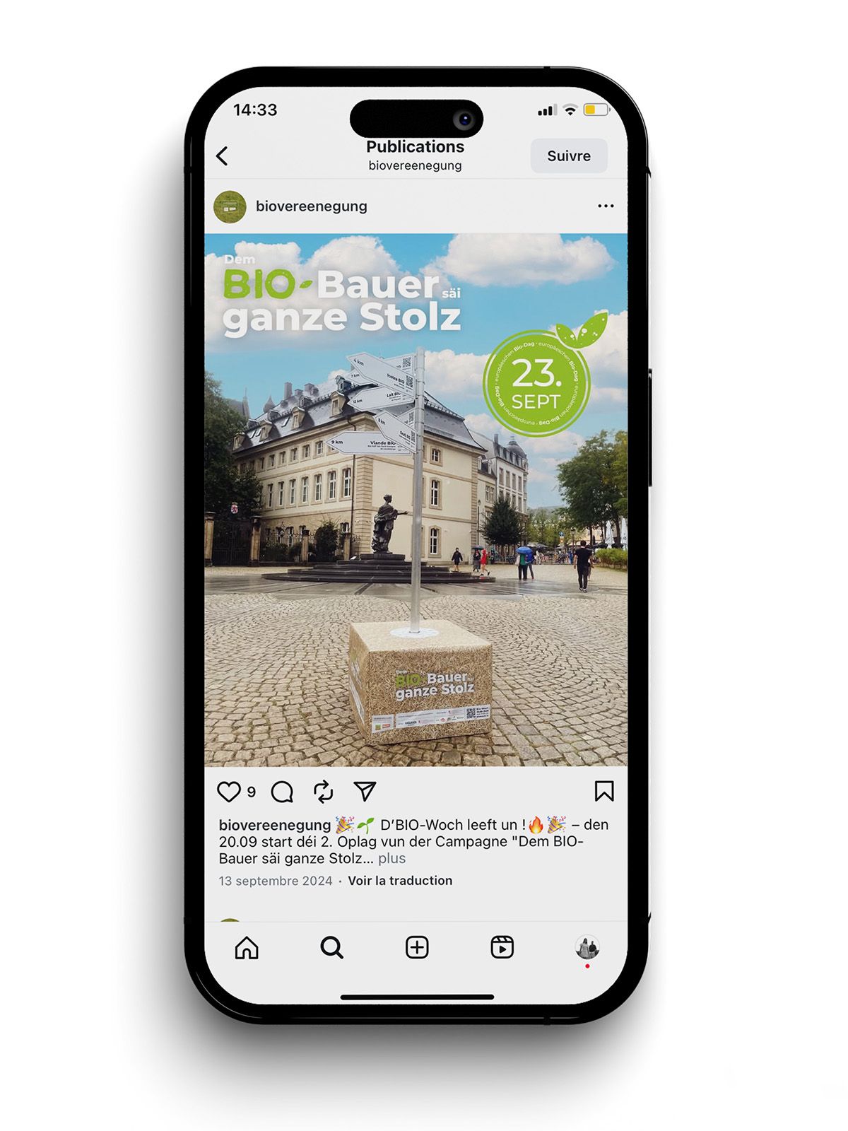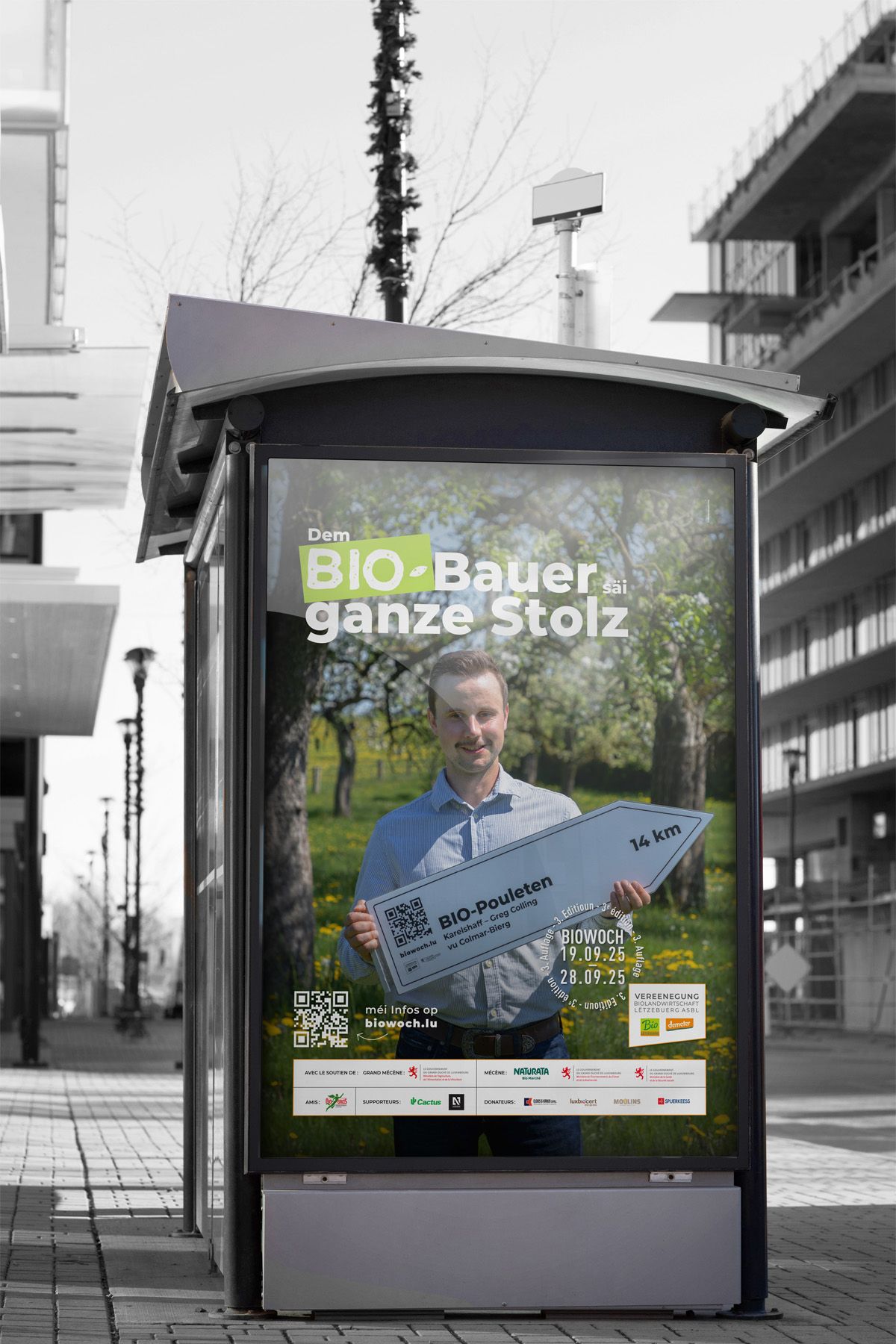 The Vereenegung fir Biolandwirtschaft Lëtzebuerg organises, with the support of the Ministère de l’Agriculture, de l‘Alimentation et de la Viticulture, a large-scale awareness campaign in the form of an organic week entitled ‘Dem Bio-Bauer säi ganze Stolz’ to promote organic farming and its products.
