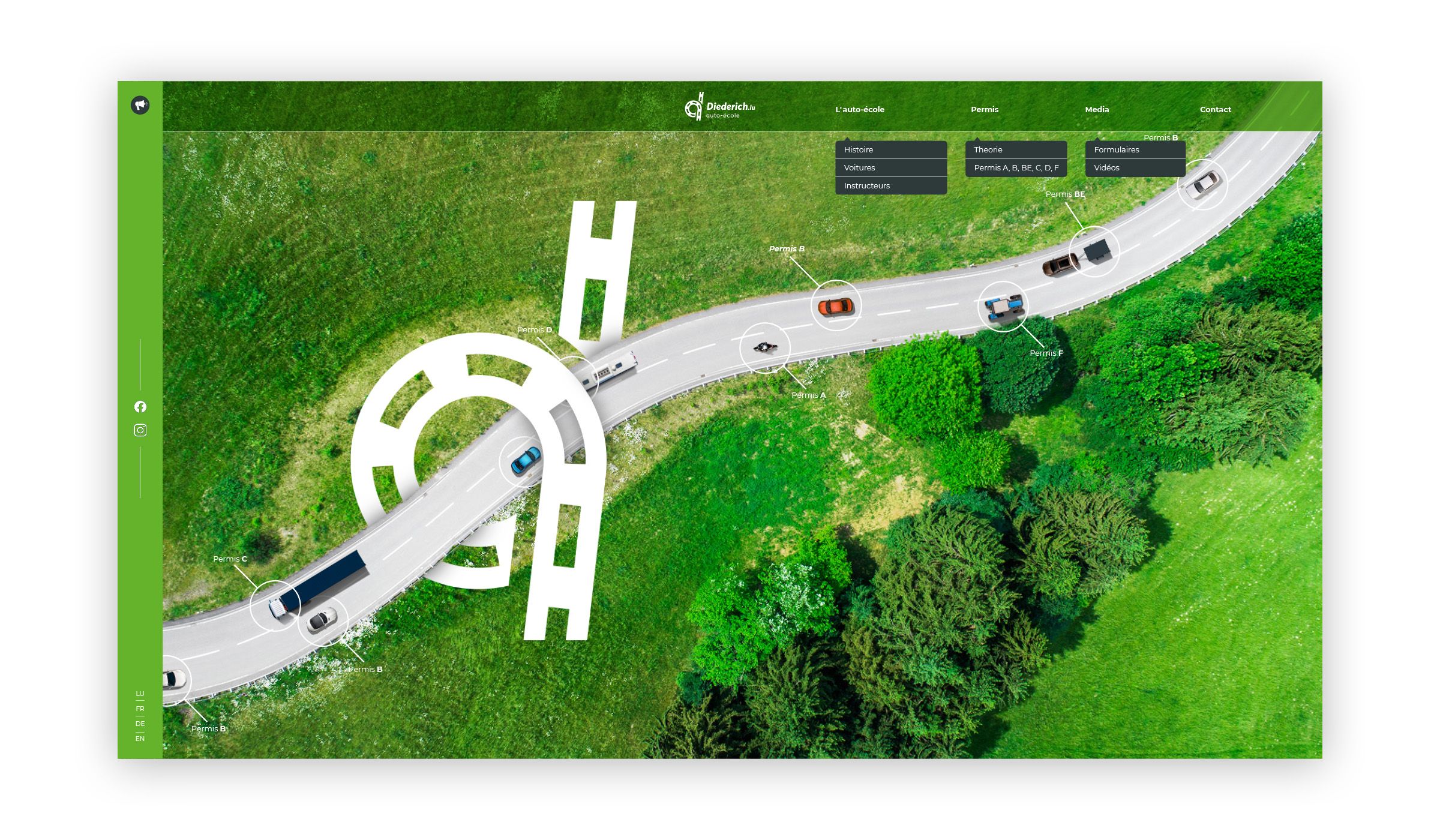 Create a dynamic new look, starting with a new logo for the family-owned Auto-Ecole Diederich driving school, founded in 1967, including the necessary printed materials, lettering for the entire fleet of vehicles, and the development of a clear website.