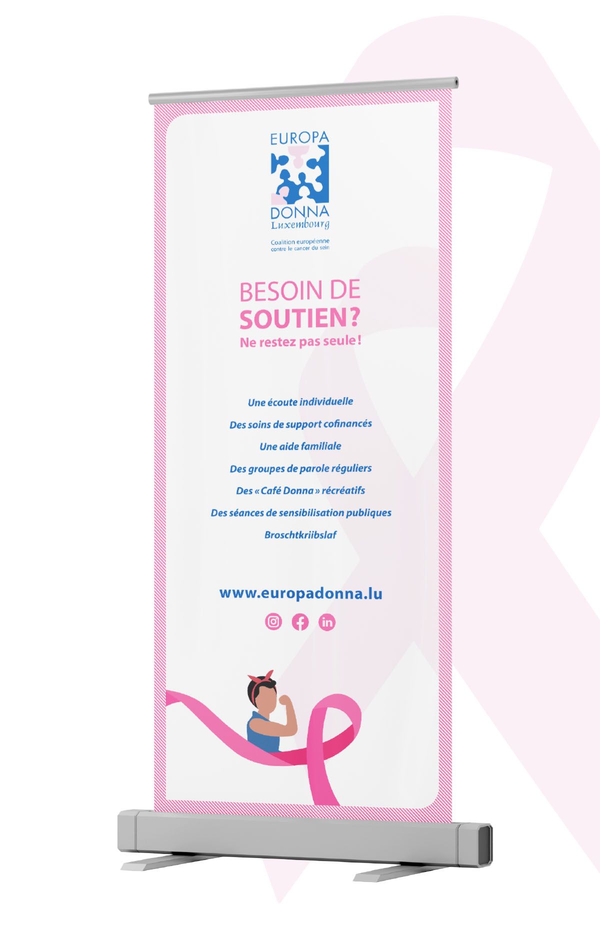 Development of all communication materials and support for the charity Europa Donna Luxembourg in the area of communication design for all projects since 2006.