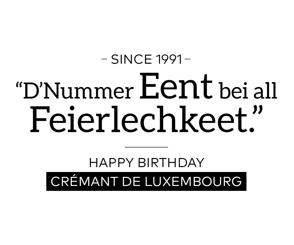 A large-scale advertising campaign for the 30th anniversary of Crémant de Luxembourg. The campaign consisted of various elements designed to reach different target groups. These included searching for the ‘children of Crémant’ – people born on the same day that Crémant appeared on the market – interviews with the founders of Crémant, and the production of a 30-second television commercial.